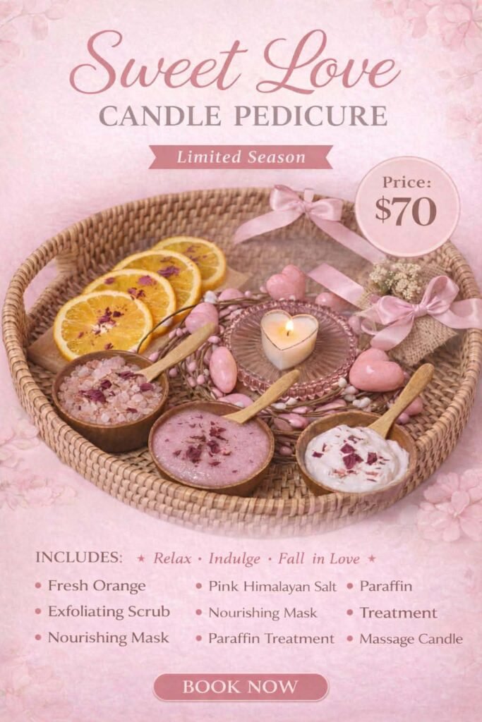 Relax and rejuvenate with a soothing pedicure. Perfectly polished toes and soft, pampered feet await.